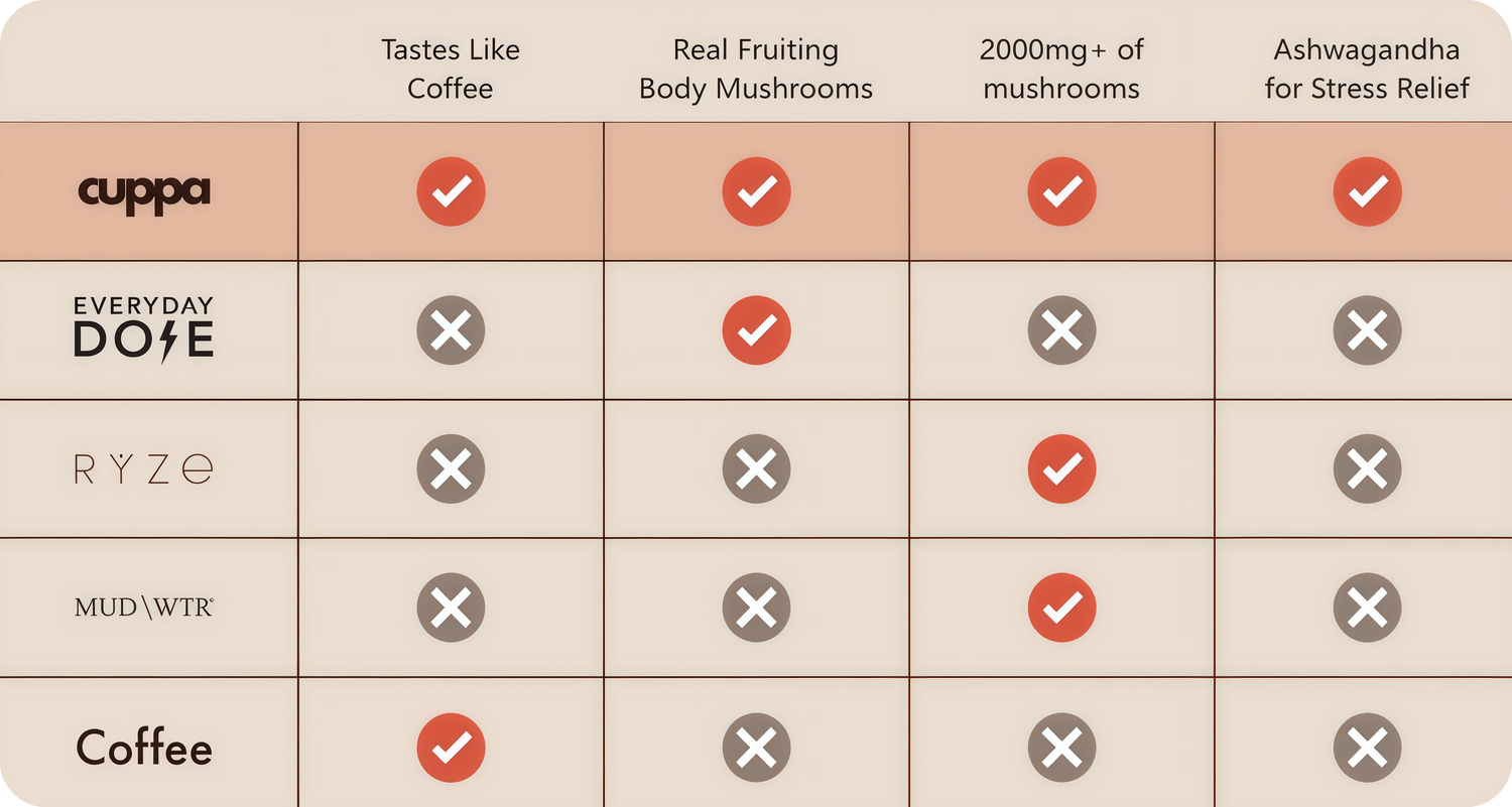 However, unlike your regular cup of coffee, cuppa adds L-Theanine, Ashwagandha and MCT to harness the power of caffeine to work for you, not against you. No jitters or crash, just stable, sustained energy all day. Oh and better sleep and mood too. You're welcome.